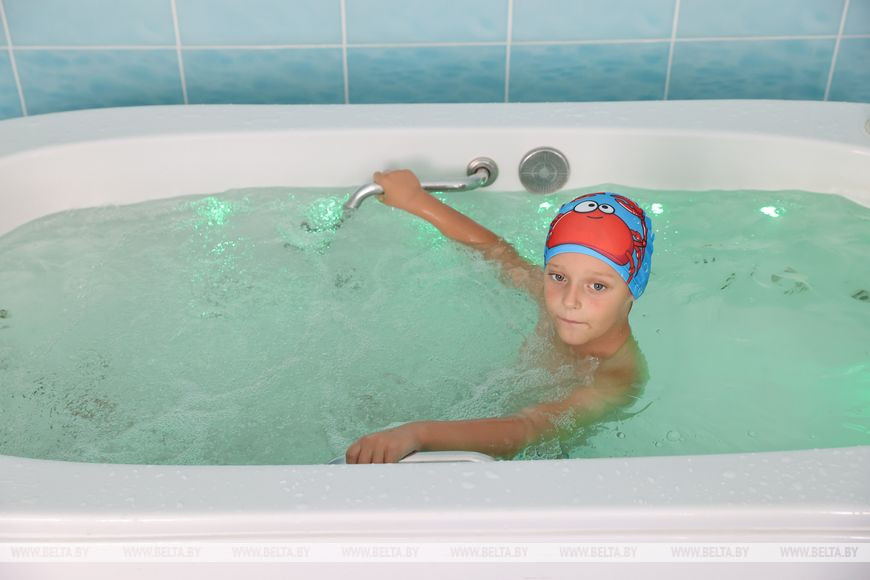 Пятилетний мальчик Паша, сын Анны Евдокимовой, принимает лечебную ванну в процедурной, пока она делится впечатлениями. "Тут созданы все условия для таких детей. Игровая комната, по вечерам дискотеки. Где в Минске можно пойти на дискотеку с пятилетним ребенком, особенно с аутистическим заболеванием? Кормят хорошо, все процедуры строго по распорядку. Ну а персонал очень приветливый. Дети все громкие, шумные, но на них никто не кричит. Если родителю необходимо выйти куда-то, то в центре всегда помогут и присмотрят за ребенком", - рассказала Анна Евдокимова.