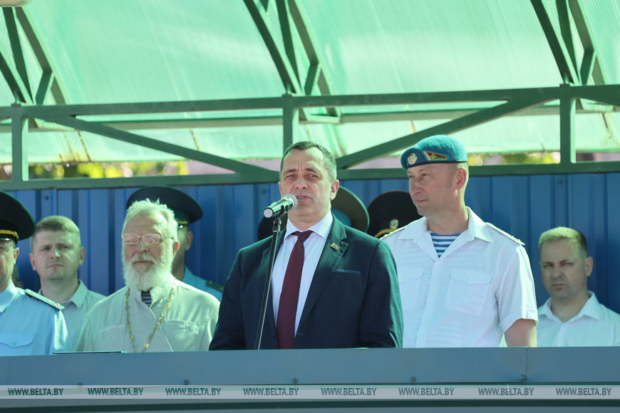 Посетили 103-ю бригаду и представители городской и областной власти. Председатель облисполкома Александр Субботин поздравил десантников со значимым праздником и пожелал защитникам Отечества, стоящим на страже спокойствия и мира в стране, всегда и везде добиваться только победы. "Вы по праву являетесь элитой Вооруженных Сил. Мы с гордостью говорим, что именно в Витебске 103-я десантная дивизия была, а сейчас есть бригада, и мы гордимся, что вы с нами и нас защищаете", - отметил глава региона.