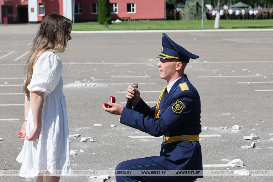 Наталья призналась, что она родом из Гомельщины, познакомилась с будущим мужем, тогда уже выпускником Рязанского воздушно-десантного командного училища, в Беларуси и почти случайно. Поначалу она не отвечала на его знаки внимания, однако настойчивый десантник добился ответа на свои чувства и привез в Витебск, куда попросился на службу по зову души. Вместе с маленьким Тимуром жена десантника старается не пропускать ни одного праздника и возможности побывать в части, чтобы увидеться с любимым человеком.