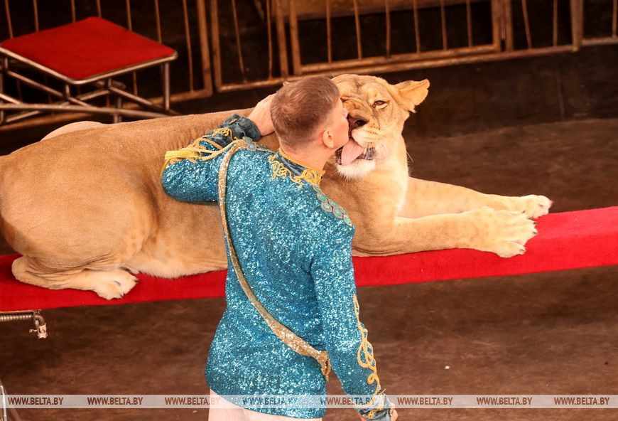 В диалоге с дрессировщиком ребята интересовались, какой был его путь в цирковом деле. Как отметил Виталий Смолянец, в цирке он с 1996 года. Сначала был водителем - возил артистов, потом большие грузы. После перевелся на дополнительную работу - рабочим по уходу за животными. "А дальше уже все шло своим чередом. Из рабочих по уходу перешел в ассистенты, потом стал дрессировщиком. В 2003 году приобрел двух своих подопечных - льва Симона и львицу Нику", - поделился дрессировщик. За годы работы удалось достичь определенных высот, поучаствовать во многих фестивалях, получить награды.