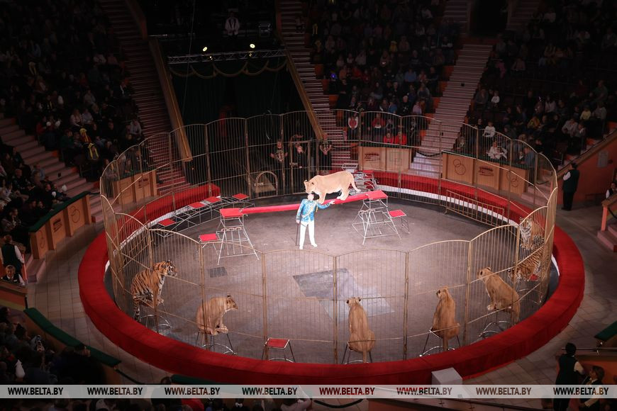 Рассказывая о репетиционном процессе, укротитель обратил внимание: у него и его подопечных один выходной - понедельник. "Со вторника начинаются репетиции с основным составом, с теми, кто еще только готовится к выходу, а также с малышами, которые привыкают к манежу, к реквизиту. В субботу - воскресенье работаем на манеже", - описал график Виталий Смолянец.