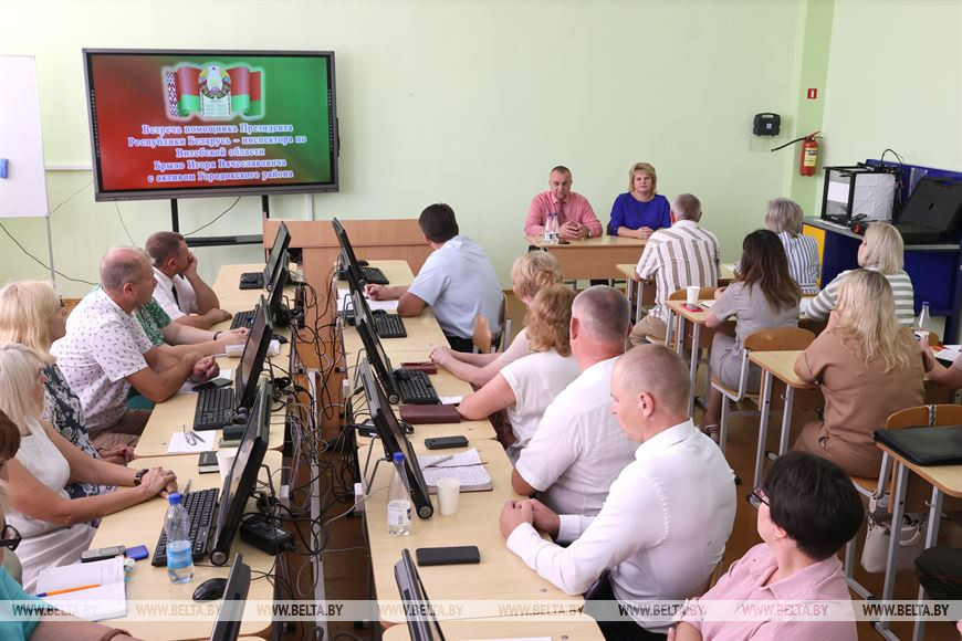 17 августа, Городок /Алеся Пушнякова - БЕЛТА/. Неформальный разговор с педагогами, активом и резервом кадров Городокского района провел помощник Президента - инспектор по Витебской области Игорь Брыло после личного приема граждан, передает корреспондент БЕЛТА.