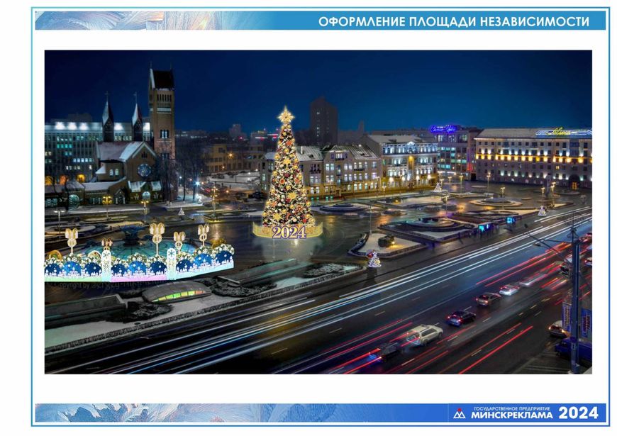 Традиционно основными новогодними площадками в столице станут Октябрьская площадь, площадь Независимости, площадки у ратуши и Двореца спорта. На Октябрьской площади устанавливать главную 30-метровую новогоднюю красавицу начнут уже в конце ноября. Она будет яркой и нарядной, усыпанной множеством разноцветных, разноформатных шаров и фрезерованных игрушек, с пиксельной сеткой, на которую смогут транслировать новогодние сюжеты.
