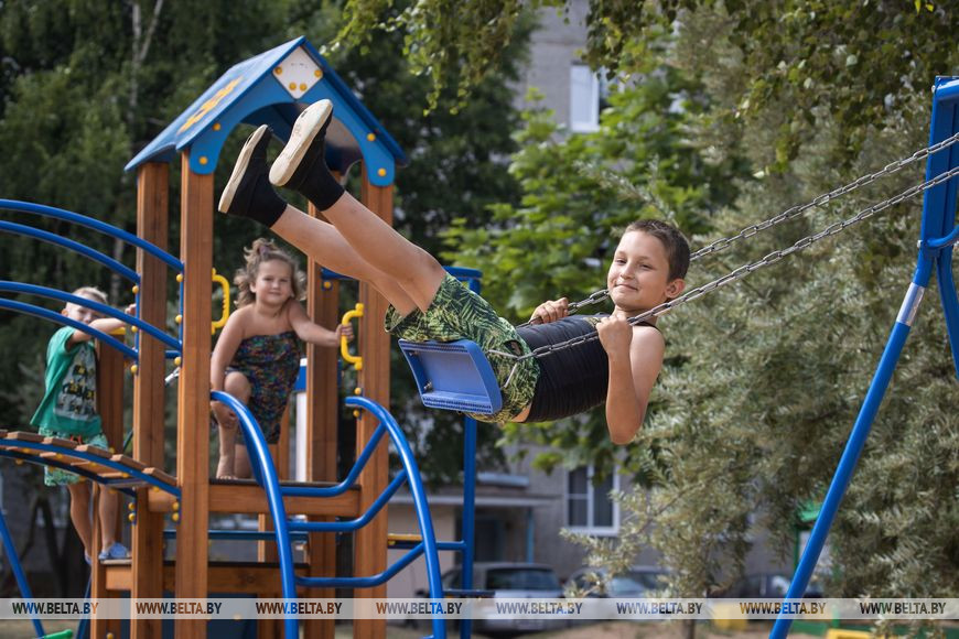 Детскую площадку торжественно открыли в начале ноября прошлого года. На мероприятии присутствовал председатель Полоцкого райисполкома Игорь Маркович. Малышня быстро облюбовала подарок.