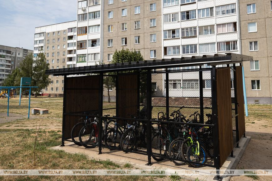 Благодаря проекту ПРООН Беларусь "Поддержка зеленого градостроительства в малых и средних городах Беларуси" удалось установить велогараж на 20 мест.