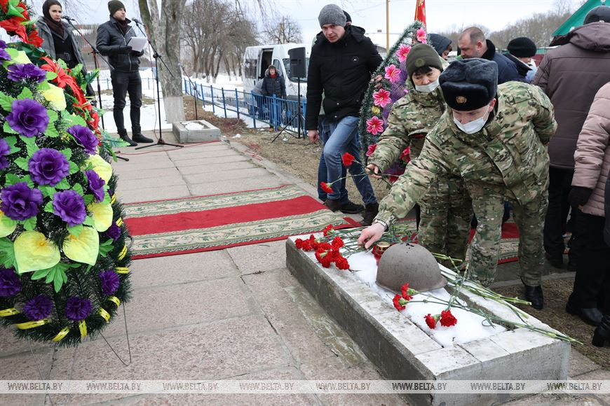 23 февраля, Ветковский район /Корр. БЕЛТА/. Останки 21 советского солдата перезахоронили сегодня в братской могиле в агрогородке Шерстин, передает корреспондент БЕЛТА.