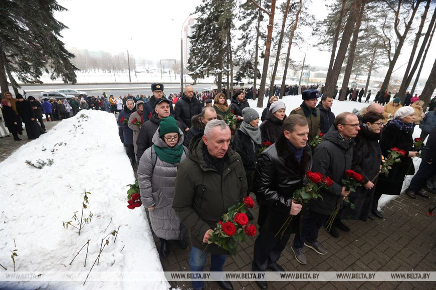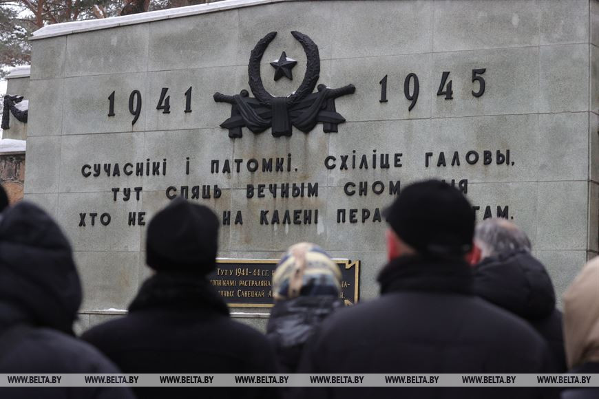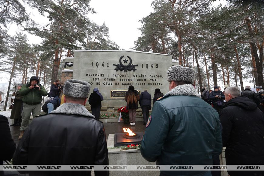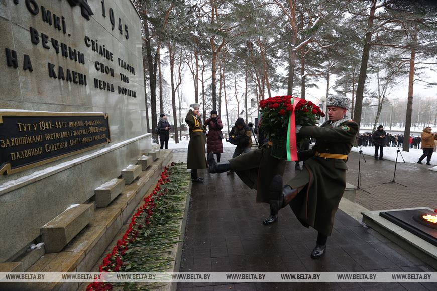 9 декабря, Минск /Корр. БЕЛТА/. В мемориальном комплексе "Масюковщина" в Международный день памяти жертв преступления геноцида состоялась церемония возложения цветов у мемориала жертвам концлагеря "Шталаг-352", передает корреспондент БЕЛТА.
