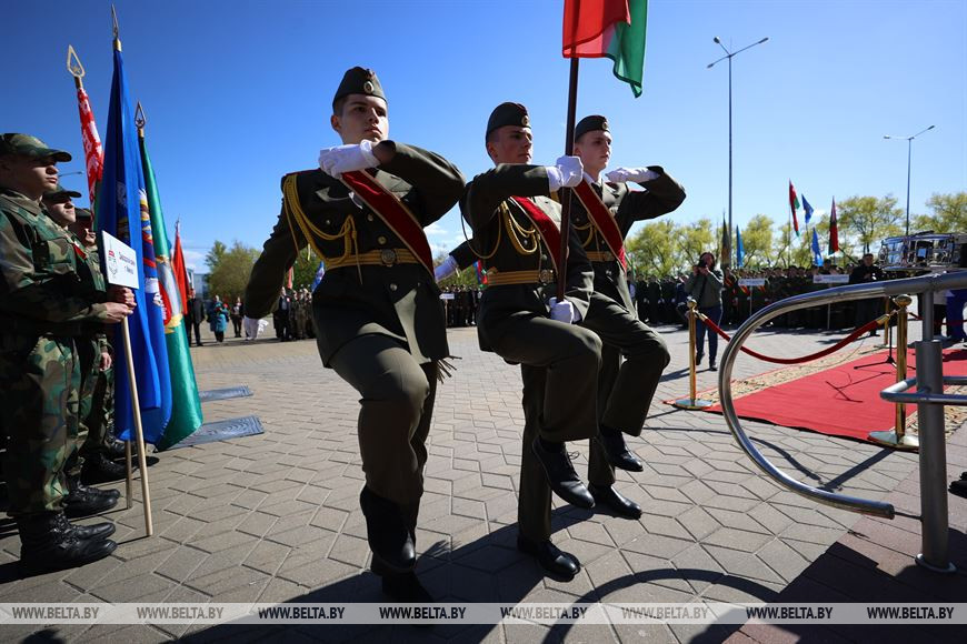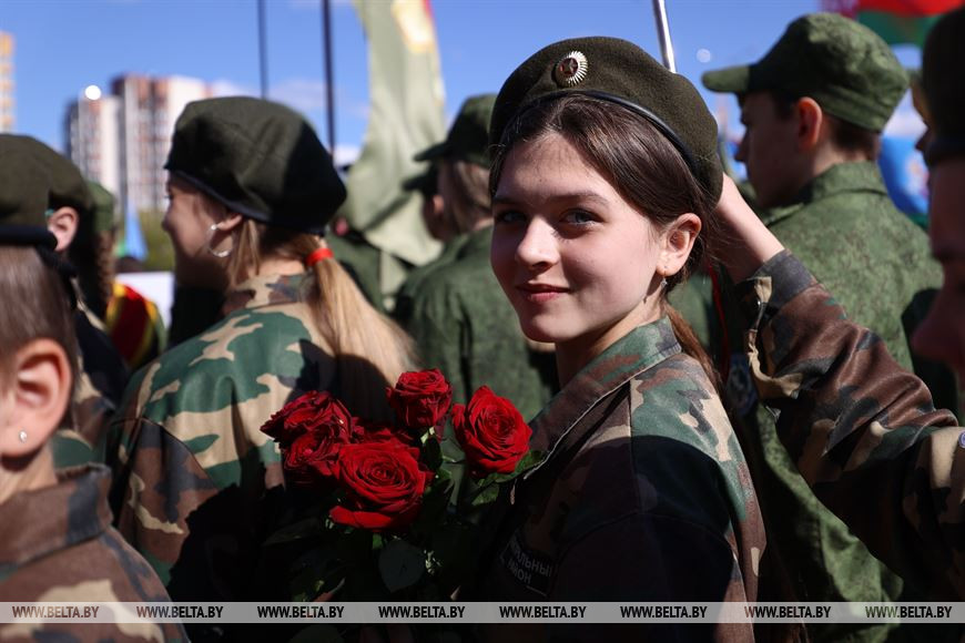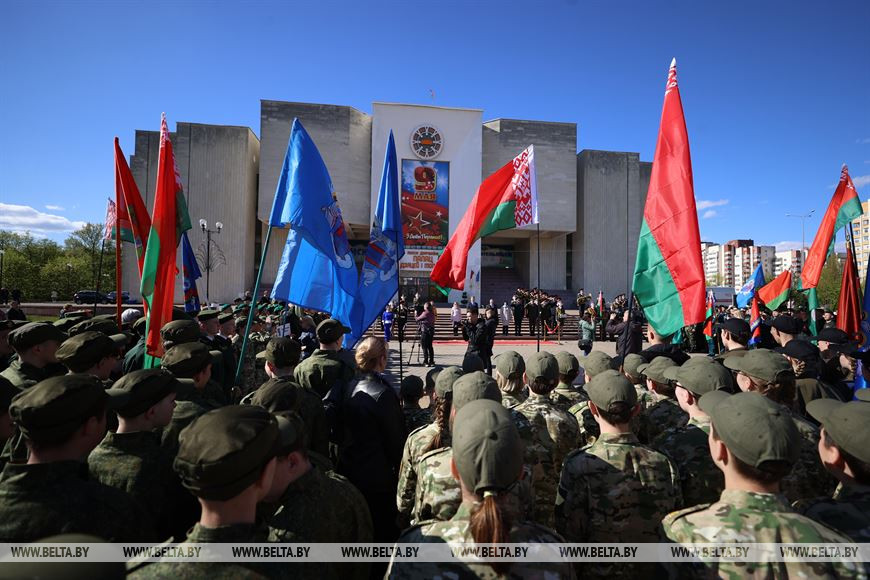 "Мы открываем слет в преддверии Дня Победы. Вы должны помнить о предках, которые своим мужеством и героизмом защитили нашу Родину в годы войны, все сделали для того, чтобы мы жили свободно и счастливо. Каждый должен понимать, что самая главная задача - это защита Родины, своей независимости. Приятно видеть молодых людей в форме различных родов войск, которые, я думаю, позволят им стать смелыми, ловкими, быстрыми. Хотелось бы, чтобы многие из вас выбрали своей будущей профессией защиту Родины", - добавил председатель Мингорисполкома.-0-