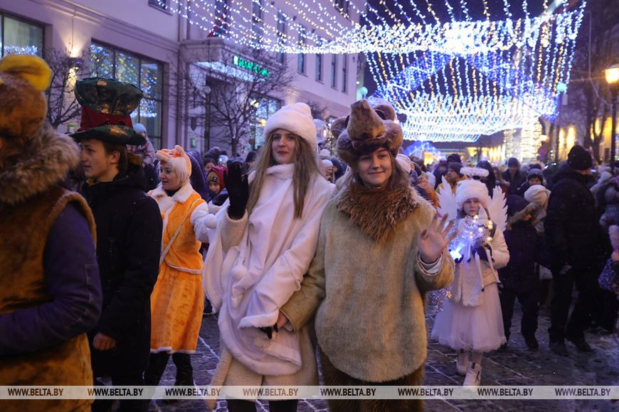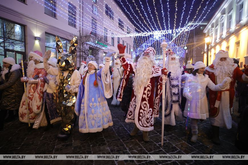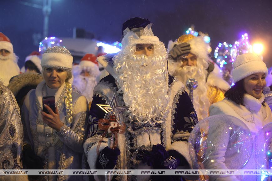 16 декабря, Гродно /Корр. БЕЛТА/. По центру Гродно прошли около четырехсот Дедов Морозов и Снегурочек, передает корреспондент БЕЛТА.