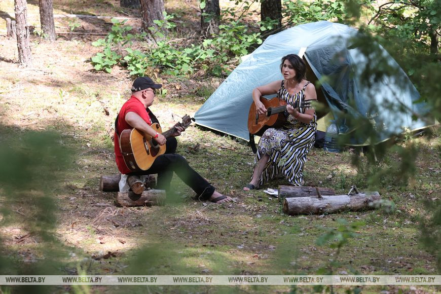 Заблудиться в поисках нужного поворота не получится: добраться до фестиваля можно по звуку - песни слышатся прямо из леса. В этом году участниками фестиваля стали 50 бардов из Беларуси, России и Латвии.