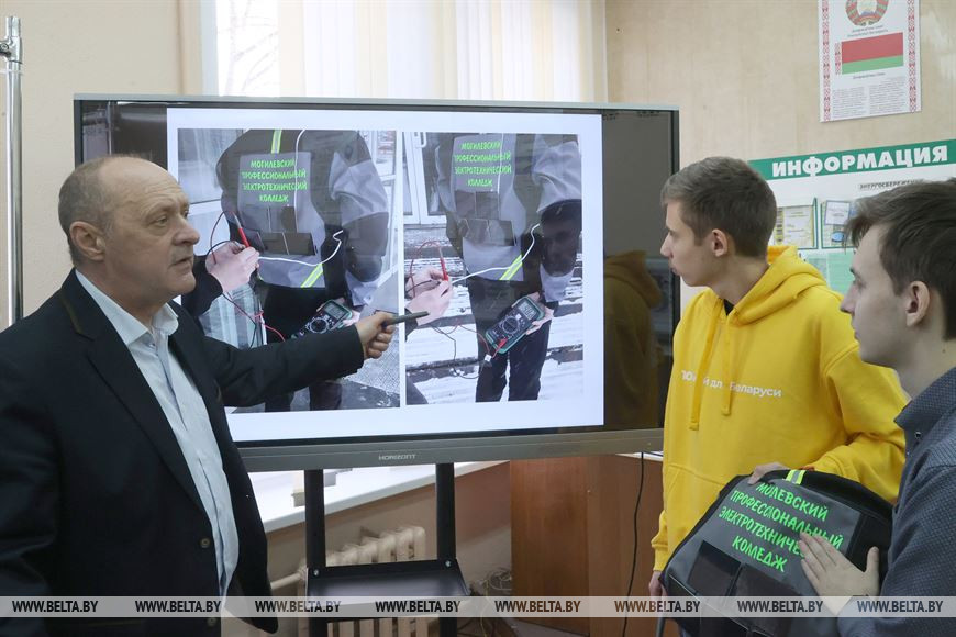 28 марта, Могилев /Корр. БЕЛТА/. Работа учащегося 1-го курса Могилевского профессионального электротехнического колледжа Владислава Малаткова "Энергоэффективная спецодежда" победила в республиканском молодежном конкурсе "100 идей для Беларуси". Проект направлен на создание более дешевого, по сравнению с зарубежными аналогами, практичного, не требующего подзарядки, удобного и легкого энергоэффективного костюма. Комплект одежды с обувью можно использовать при длительном нахождении на улице с низкими температурными показателями. У Владислава, его однокурсника Антона Афоневича и преподавателя спецдисциплин Валерия Бегунова в проектах еще много экологических проектов.-0-