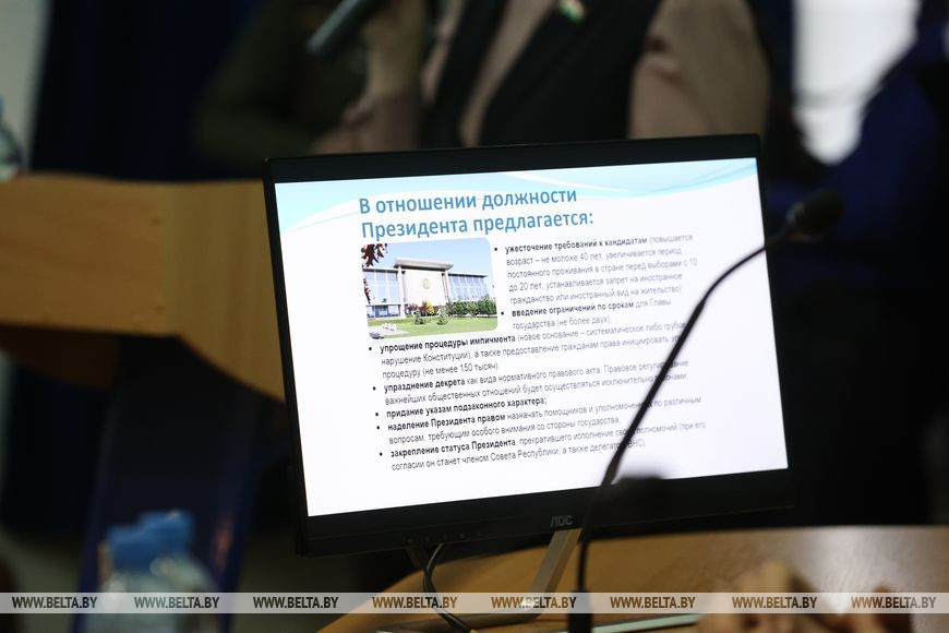 Она добавила: в трудовых коллективах подробно знакомятся с предложенными новациями в Основной закон, в том числе интересуются полномочиями Всебелорусского народного собрания в новом формате. "Это не новый институт для нас, но, каков порядок избрания членов ВНС в новом формате, будет определено позже. То, что среди педагогической общественности есть желающие стать членами ВНС, я в этом уверена. Потому что педагоги - самая прогрессивная часть населения", - убеждена она.