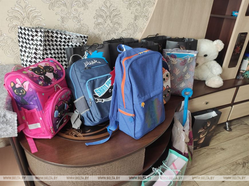 18 августа, Гомель /Корр. БЕЛТА/. Председатель Гомельского облисполкома Иван Крупко вручил 18 августа школьные портфели, игры и сладкие наборы ребятам из многодетной семьи, проживающей в одном из молодых микрорайонов Гомеля, передает корреспондент БЕЛТА.