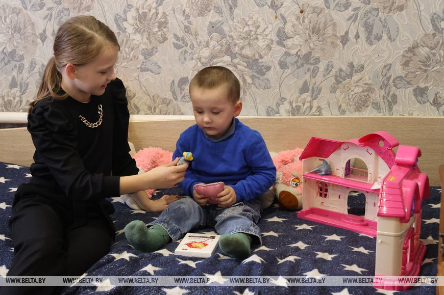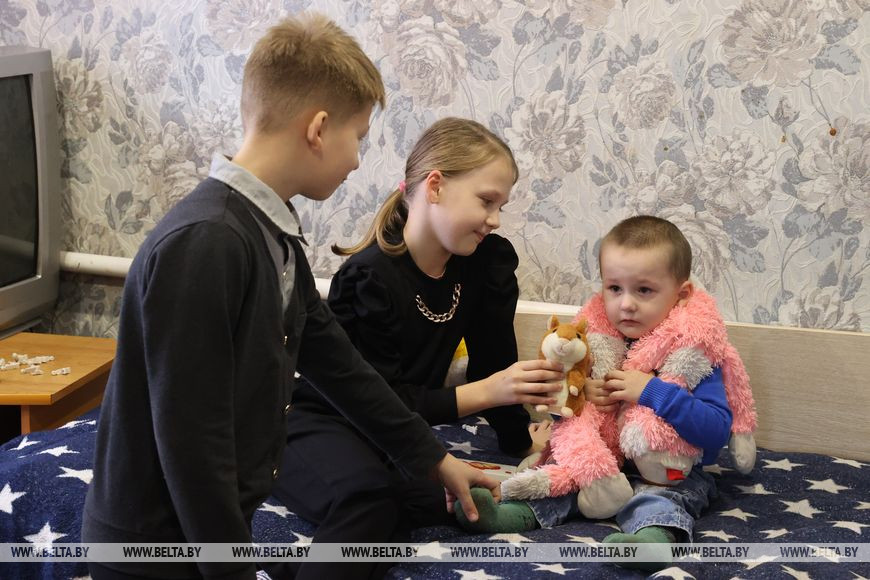 Пока разговариваем с главой семьи, дети уже распотрошили в комнате шоколадку и с удовольствием уплетают ее за обе щеки. Костик все время рядом с сестричкой, от нее ни на шаг - как только Ульяна отлучается даже ненадолго, сразу ищет глазами и может даже заплакать: мол, куда без меня пошла? Общительная и доброжелательная девочка учится в третьем классе, занимается в детской школе искусств. "В средней школе больше всего люблю математику - решаю задачи и в одно, и в два действия, - признается непоседа. - А вообще нравится рисование и музыка, играю на цимбалах. Занимаюсь с Костиком, а еще помогаю бабушке готовить. В последний раз варили манную кашу, но она чуть-чуть пригорела. Чтобы в каше не было комочков, ее надо долго размешивать - это мне бабушка рассказала".