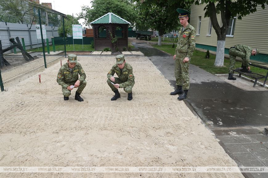 Алгоритм действий отрабатывают в городке пограничной службы. В нем расставлены макет контрольно-следовой полосы (КСП), сетка-заграждение - все как на настоящем кордоне. Военнослужащие учатся читать следы на песке, зимой - на снегу. "Видите - пять дорожек. На каждую дается минута, чтобы солдат мог определить количество зашифрованных нарушителей, их способы ухищрения, направление движения", - поясняет Александр Кондрацкий.
