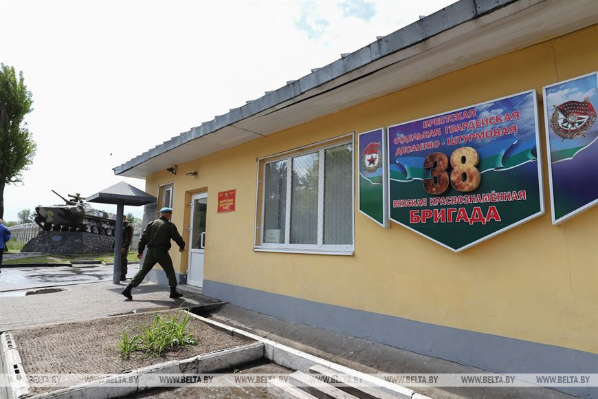 У ворот контрольно-пропускного пункта нас встречает легендарная БМД-1. Отсылка к тому, что современные воины-десантники достойно продолжают и преумножают традиции поколения победителей. Бригада является преемницей 105-й гвардейской стрелковой дивизии, образованной во время Великой Отечественной войны. За мужество и героизм при взятии венгерских городов Папа и Девечер она награждена орденом Красного Знамени. За взятие столицы Австрии ей присвоено почетное наименование "Венская". В октябре 1979 года дивизия была переименована в 38-ю десантно-штурмовую бригаду.