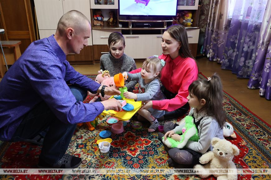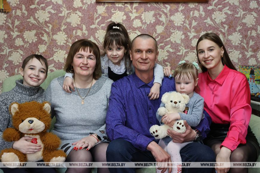 Семья, в которой почти всегда царят лад, взаимопонимание и поддержка, вовсе не является выдумкой писателей и кинорежиссеров, рассказывающих нам об этом в книгах и с телеэкранов. И особенно приятно, когда большая семья, в которой бок о бок живут несколько поколений и люди с разными характерами, желаниями, амбициями, становится единой, сплоченной, крепкой, словно алмаз. Даже беглого взгляда на Татьяну и Сергея Ермаковых, проживающих в пригороде Орши, достаточно, чтобы понять, что супруги, воспитывающие пятерых детей, представляют собой те самые предназначенные друг другу неразлучные половинки. Многодетная мама рассказала корреспонденту БЕЛТА, что у их дочерей и сыновей разные вкусы, увлечения и стремления, но мнение каждого из них родители учитывают, когда на семейном совете принимают важное для всех решение. "Но последнее слово всегда за главой семьи", - сразу же расставила приоритеты Татьяна Ермакова.