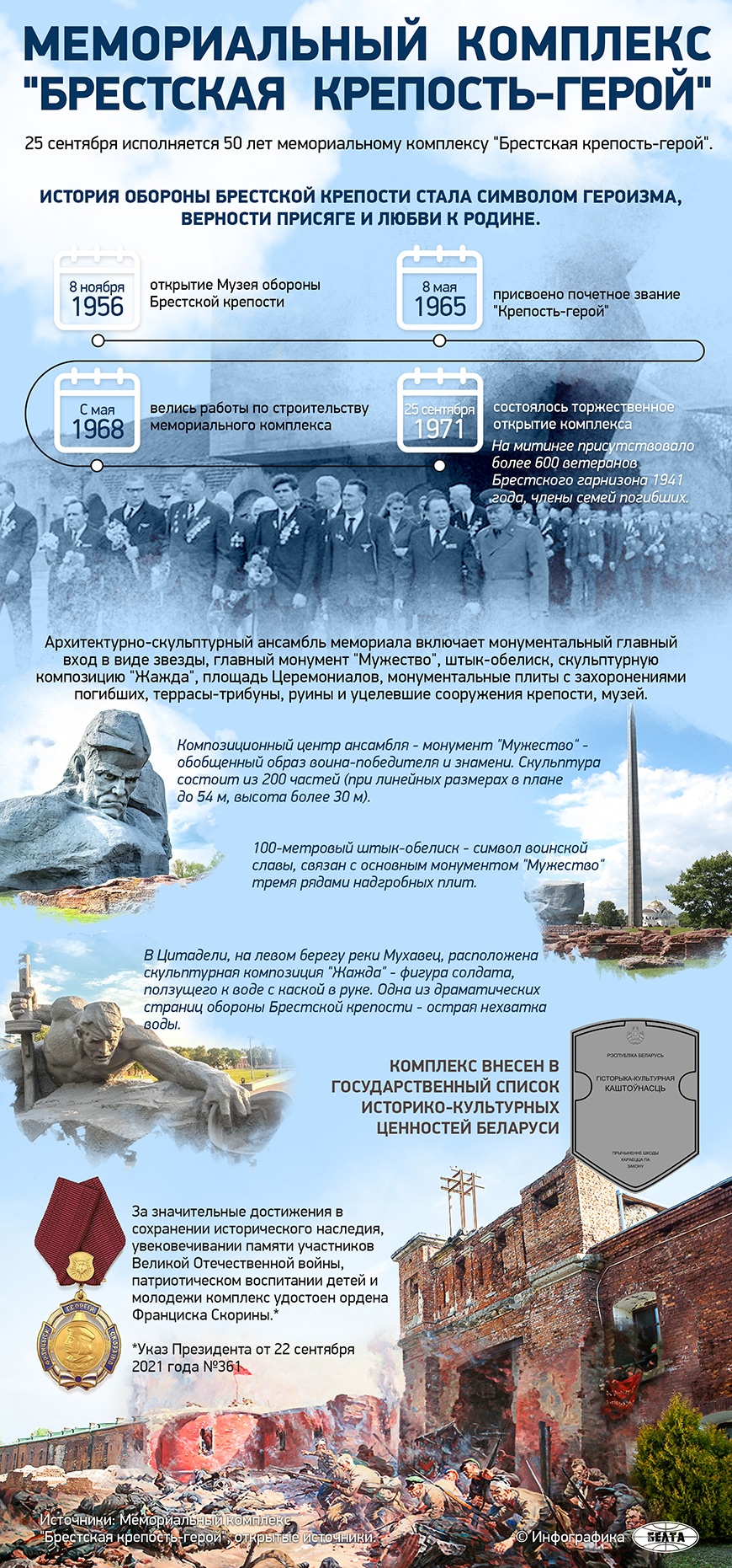 "Для Беларуси и стран постсоветского пространства - это символ мужества и героизма. С момента открытия Музея обороны Брестская крепость стала, наверное, местом паломничества. За это время ее посетили более 25 млн человек. Отклики идут со всего мира", - рассказывает директор комплекса "Брестская крепость-герой" Григорий Бысюк. Речь идет об организованных туристах. Самостоятельно здесь побывало в разы больше людей.