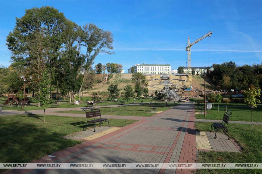Первый камень в основание нового для Могилева парка был заложен в апреле 2014 года. Тогда же началась большая стройка. Работы по освоению территории будущего парка велись почти 4 года - за это время отсюда вывезли больше 2 тыс. куб.м мусора. Могилевчане с большим интересом наблюдали за стройкой - проект парка был не самым обычным. Больше всего интриговала лестница, ведущая в парк с площади Орджоникидзе. Тут вам и каскадный фонтан, обзорные площадки и лавочки для тех, кто устал от спуска или подъема. А устать есть от чего - в ней 250 ступенек. Если верить интернету, могилевская лестница даже больше знаменитой Потемкинской - в ней их всего 192.