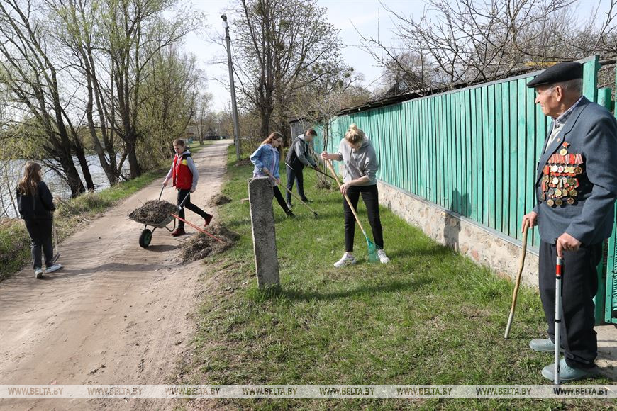 Гости помогли ему навести порядок на придомовой территории. Ребята убрали прошлогоднюю траву на берегу Припяти, которая во время разлива подходит к подворью. Волонтеры подарили ветерану цветы и сладости.