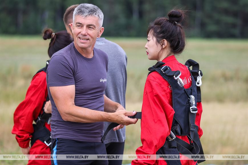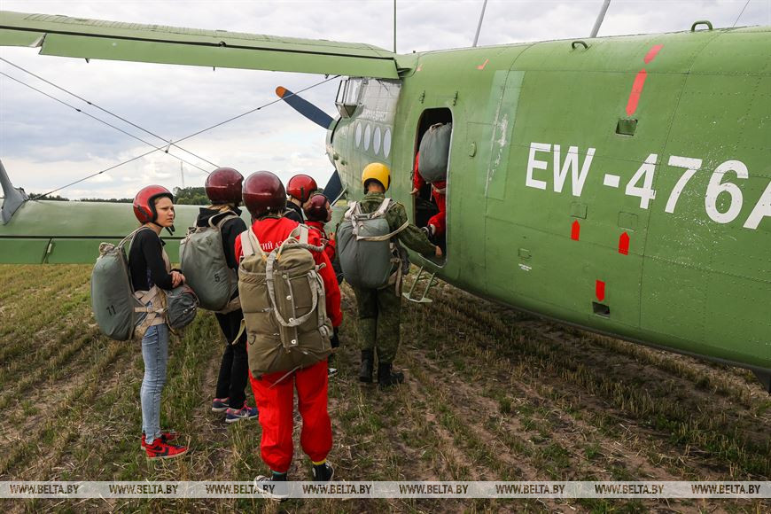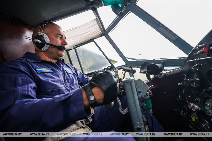 Вдалеке слышится гул самолета. Ан-2 немного покружился над полем и приземлился на взлетной полосе. На посадку готовится первая группа парашютистов, в том числе и китайские туристки. Пилотирует самолет Алексей Мойсевич. В авиации он с 1996 года, бывший военный вертолетчик. За штурвал Ан-2 пересел шесть лет назад. Честно признается, что сначала этот самолет вызвал у него скепсис, ведь в народе его называют "кукурузником". "Сейчас я его очень уважаю. Самолет - надежный, с характером. В общем, я его люблю", - признался пилот.