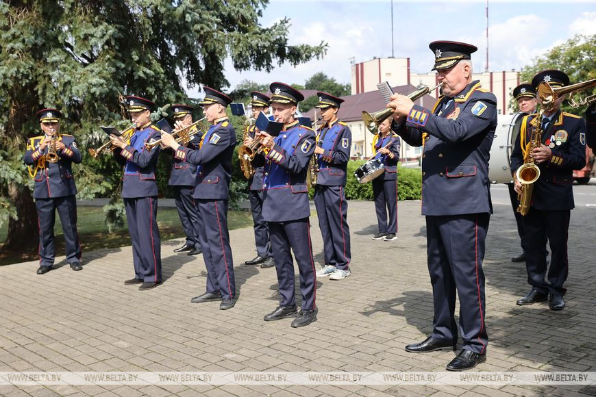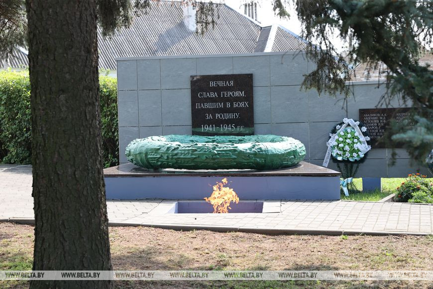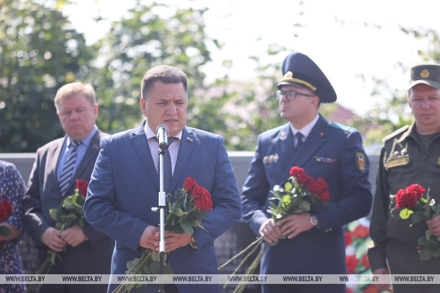 "Я родом из Столбцовского района. Наш район богат на героическую историю Великой Отечественной войны. Через него в направлении Москвы шла самая подготовленная и многочисленная группировка армии "Центр". Несмотря на превосходящую силу противника, наши земляки проявляли мужество и героизм. Так, 27 июня 1941 года воины 33-го отдельного артиллерийского дивизиона сражались в районе станции "Столбцы". Это знаменитый бронепоезд, который уничтожил 37 танков вермахта и живую силу противника. Это подвиги 16-го погранотряда и 256-го мотострелкового полка, которые сражались в районе бывшей польско-советской границы, в районе станции Колосово, и подвиг комиссара Лапина, всю ночь в одиночку отражавшего атаки противника", - обратился к присутствующим командир войсковой части 28443 Андрей Рубин.