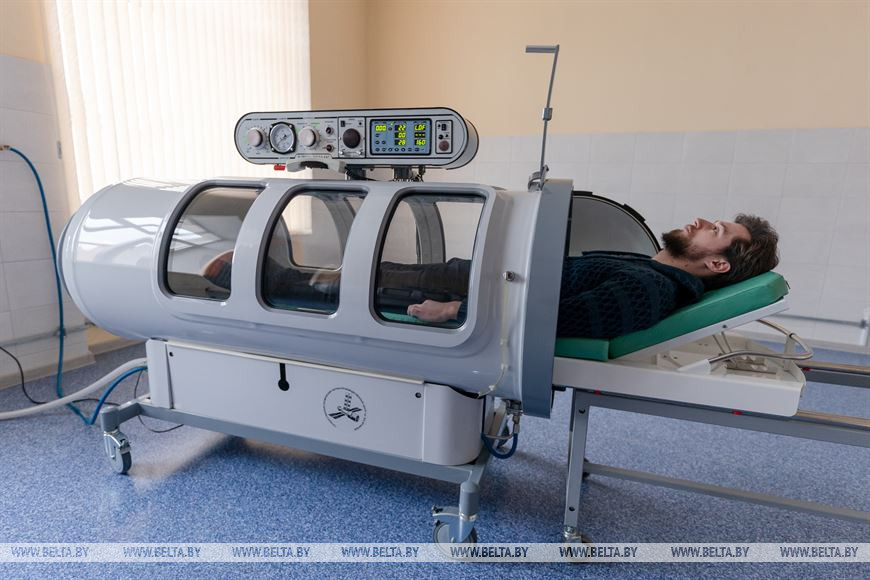 Что есть в "Кринице" такого, чего нет на других белорусских курортах? Много чего, что входит в понятие хорошего медицинского продукта! Например, не так давно здравница, кстати, единственная из санаторно-курортных учреждений страны, приобрела две гипероксибарокамеры, работающие на чистом кислороде. Такая установка – разработка космического характера, сделанная по заказу российской госкорпорации "Роскосмос". Испытали на себе силу и эффективность оксибаротерапии белорусские и российские врачи, переболевшие COVID-19, прибывшие сюда по профсоюзным путевкам. Страдающие послековидной одышкой, они в первые дни с трудом поднимались по лестнице, однако после 10-12 сеансов в барокамере эта группа гостей практически распрощалась с недугом. По возвращении домой на вопрос о том, как им отдыхалось, врачи говорили: "Криница" – это космос! Больше, чем санаторий!". Чтобы увеличить пропускную способность нуждающихся в оксибаротерапии и обеспечить этой медуслугой всех желающих, руководство санатория намерено организовать двухсменную работу барокамер.