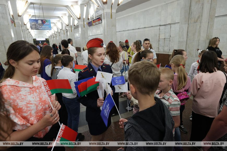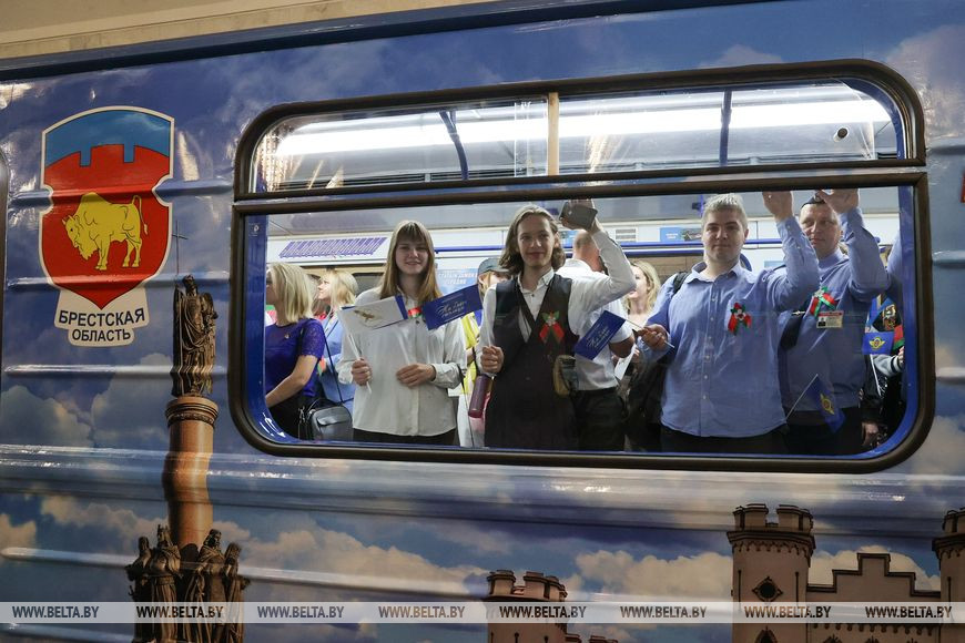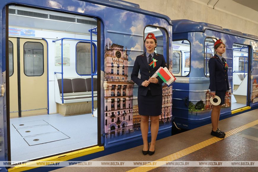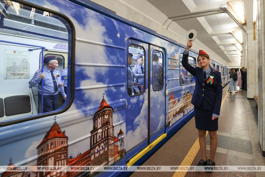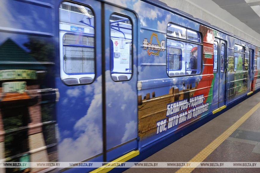 3 июля, Минск /Корр. БЕЛТА/. Брендированный поезд "СемьЯ" пустили в День Независимости на станции метро "Площадь Победы" в Минске. Пуск тематического поезда прошел в рамках городской акции "Тое, што нас аб'ядноўвае", приуроченной к Году мира и созидания, передает корреспондент БЕЛТА.