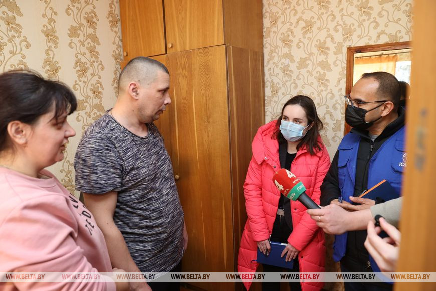 Сегодня санаторий, где размещаются граждане Украины, посетили представители различных организаций ООН, пообщались с людьми, узнали, в каких условиях размещаются, какая помощь нужна. Сотрудник Международной организации по миграции поинтересовался у семьи, насколько тяжело было приехать в Беларусь. "Мы жили рядом с границей. Около 5 км прошли пешком. И нас пропустили (в пункте пропуска. - Прим. БЕЛТА), потом за нами приехали и привезли на территорию санатория", - описал путь Виталий Федченко. По словам мужчины, у него здесь есть родственник, однако он еще не гражданин Беларуси.