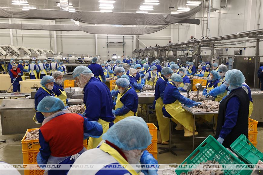 Юрий Шулейко посетил цеха перерабатывающего предприятия и отметил высокую культуру производства и перспективы развития. Компания постоянно совершенствует производство, инвестирует в экологические и социальные инициативы. На территории предприятия построили самый большой в Беларуси холодильный комплекс на природных хладагентах. Производство переходит на роботизированные комплексы. Так, на линии сурими с задачами 28 человек сейчас умело справляются 6 японских роботов. В прошлом году компания BREMOR произвела 140 тыс. т продукции - это на 20 тыс. т больше, чем в 2020-м, и абсолютный рекорд за всю ее историю.-0-