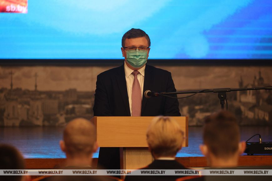 16 декабря, Витебский район /Алеся Пушнякова - БЕЛТА/. Кадеты - это патриоты, которые с детства решают связать свою жизнь с защитой Родины, и нет ничего благороднее, чем защищать Отечество. Такое мнение высказал председатель Государственного комитета по науке и технологиям (ГКНТ) Александр Шумилин на встрече с учащимися Витебского кадетского училища, передает корреспондент БЕЛТА.