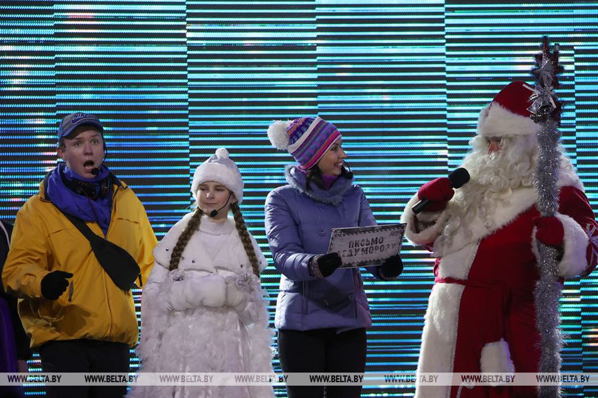 Главный сказочный персонаж торжества Дед Мороз передал почетное право оживить разноцветным сиянием новогоднюю красавицу председателю Могилевского горисполкома Владимиру Цумареву. "До наступления самого яркого, красивого, торжественного и веселого праздника осталось совсем немного, - отметил глава областного центра. - Новый год создает особое настроение и детям, и взрослым. И мы с большим трепетом готовимся к его встрече. Чтобы праздник получился незабываемым и каждый смог окунуться в его волшебство, мы подготовили много интересных сюрпризов. Одним из них из года в год становится зажжение огней на главной елке города".