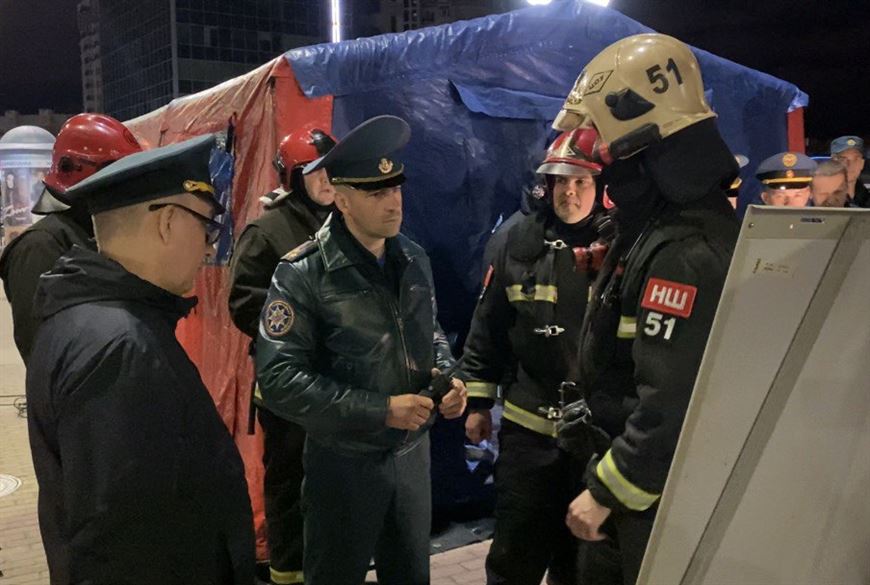 Всего в тренировке было задействовано около 100 спасателей и 27 единиц техники. Подобные учения проводятся систематически для отработки методов и приемов ведения аварийно-спасательных работ на таком сложном объекте, как метрополитен. По итогам учений получена высокая оценка деятельности подразделений столичного гарнизона, в том числе и зарубежными коллегами.-0-