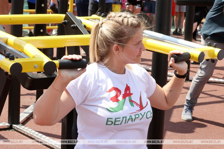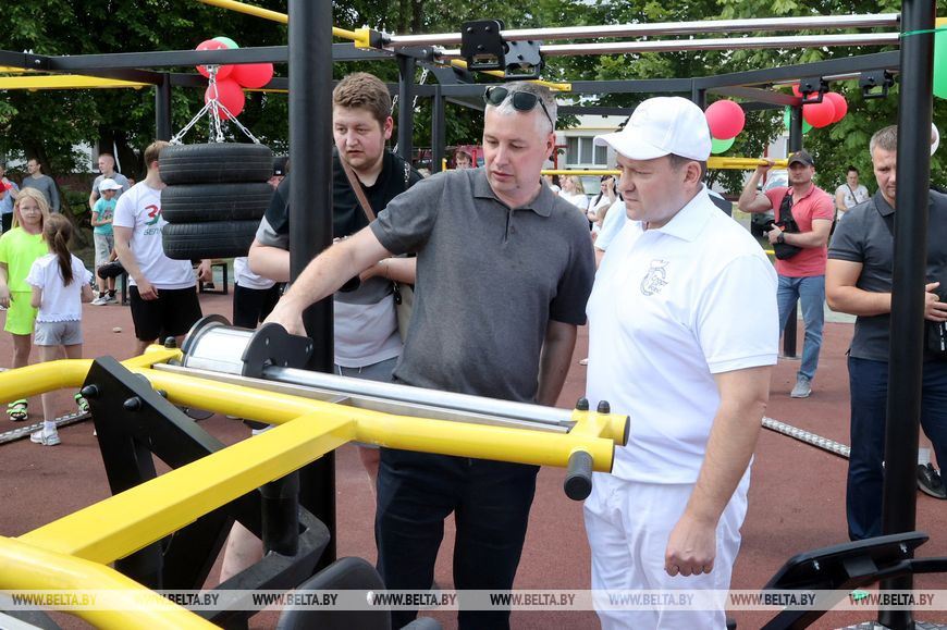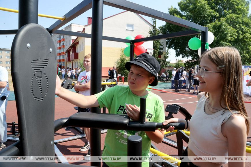 9 июня, Белыничи /Корр. БЕЛТА/. Торжественное открытие современной многофункциональной силовой площадки состоялось в Белыничах. Новый спортивный объект для детей и взрослых появился благодаря республиканскому социальному проекту Президентского спортклуба "Спорт для всех" и участию Белыничского райисполкома, передает корреспондент БЕЛТА.