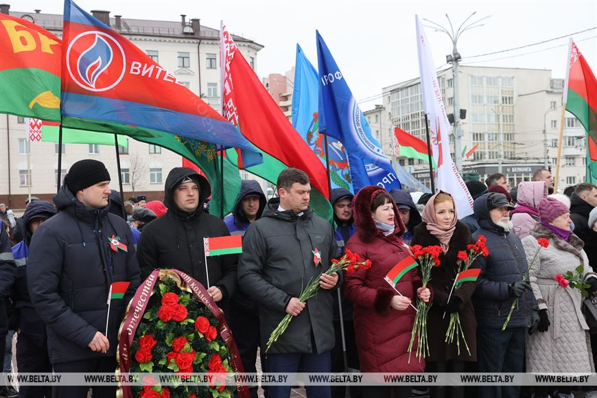 Александр Субботин также подчеркнул, что в этот день отдается дань уважения и почета мужеству павших воинов. Звание героев Советского Союза получили около 130 воинов и партизан - уроженцев Витебской области, участвовавших в боях во время Великой Отечественной войны. Высокие моральные качества и доблесть проявляли наши солдаты и офицеры в горячих точках во время локальных военных конфликтов. Опыт, накопленный в сражениях защитниками Беларуси, вдохновляет и нынешнее поколение, которое живет в мирной стране и уверенно смотрит в будущее.