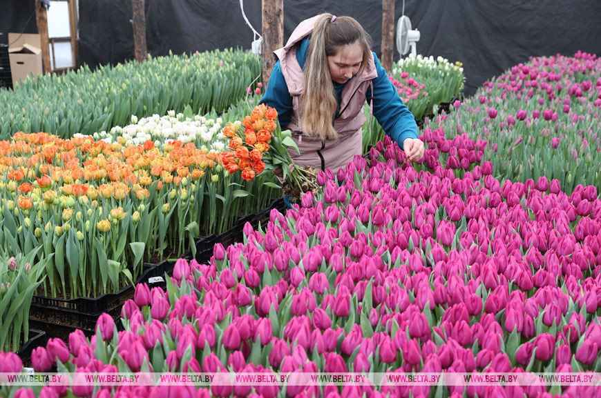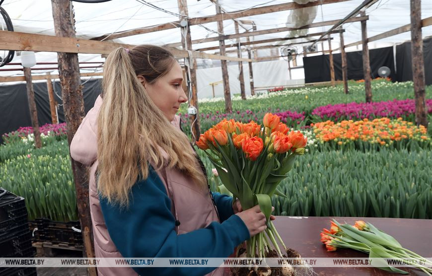 Цветоводы отработали уже День всех влюбленных. Около 5 тыс. тюльпанов украсили чей-то праздник. "Теперь планируем выйти на рынок с 1 марта, и с 6 по 8 марта - в нескольких местах по Гомелю. Мы можем продать и 100 цветочков, и 100 букетиков", - делится планами Анна.