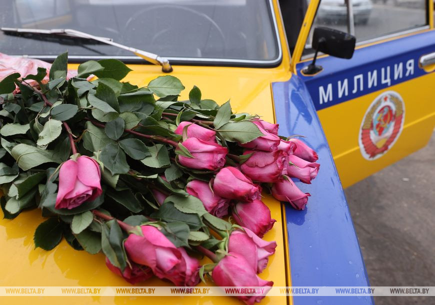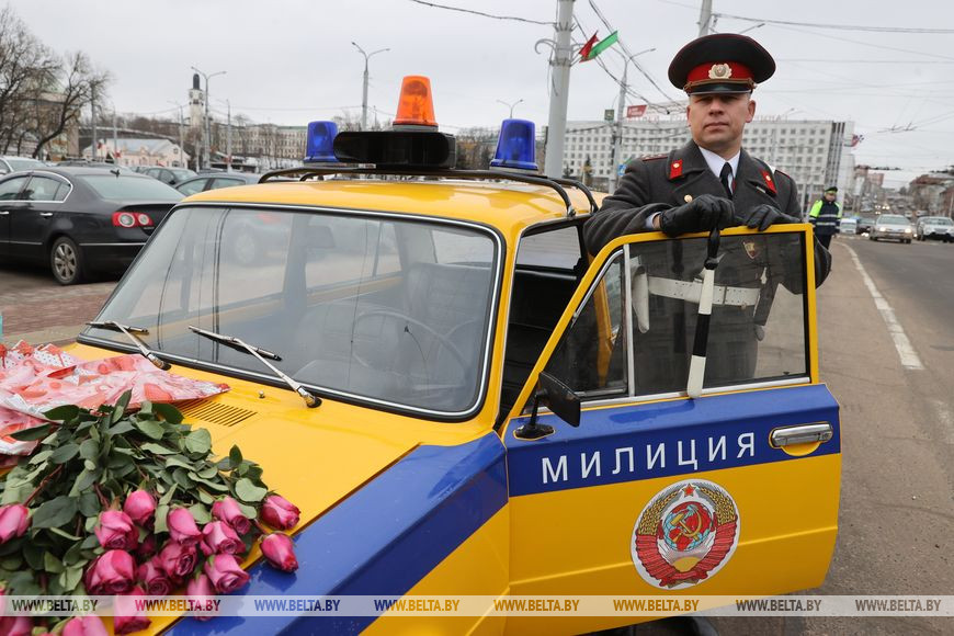 Традиционную акцию проводит сегодня Госавтоинспекция Витебской области в преддверии главного женского праздника. В этот раз привычное поздравление обыграли по-новому. В честь Года исторической памяти в Витебске на площади Свободы оказался ретроавтомобиль - желтая машина с синими полосками. Такой спецтранспорт в советские годы патрулировал улицы городов. Этот экземпляр с большой осторожностью привезли на место, чтобы не повредить исторический артефакт. Его броский цвет привлек внимание не только автолюбителей, но и прохожих.