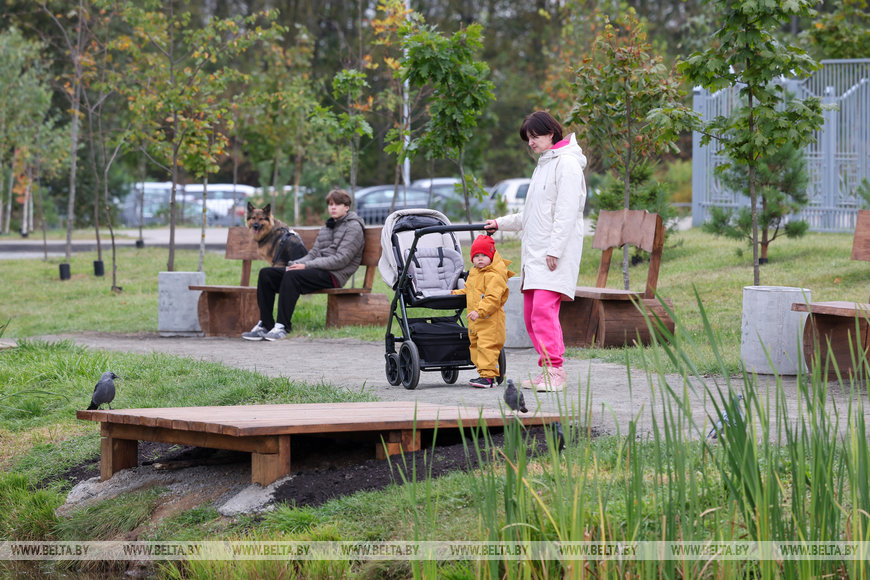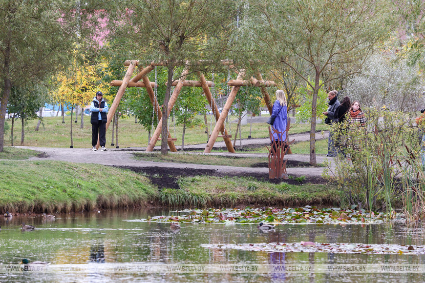 "Во дворе построили инклюзивную детскую площадку, потому что мы понимаем, что все детки равны, и хотели, чтобы все чувствовали себя здесь одинаково, чтобы дети с особенностями их не ощущали. Если с самого детства воспитывать правильное отношение к таким детям в обществе, то и в школе, и во взрослой жизни они не будут иметь преград в общении", - уверена председатель товарищества. Зона отдыха "Малиновка 5,6" в Московском районе в границах улиц Есенина и Рафиева радует и детей, и взрослых. Ребята катаются на качелях и проводят время на детской площадке, а их родители гуляют по парку. Здесь также можно встретить много собачников. И если кто-то выходит погулять с мелким пуделем, то у кого-то - большие собаки, которым нужно много пространства для прогулки. В этой же зоне отдыха можно увидеть аллею из 28 скамеек, созданных разными организациями и отражающими их индивидуальность. Белорусский орнамент, мельница, зубры, аисты, васильки и другие цветы - за каждым рисунком своя история.
