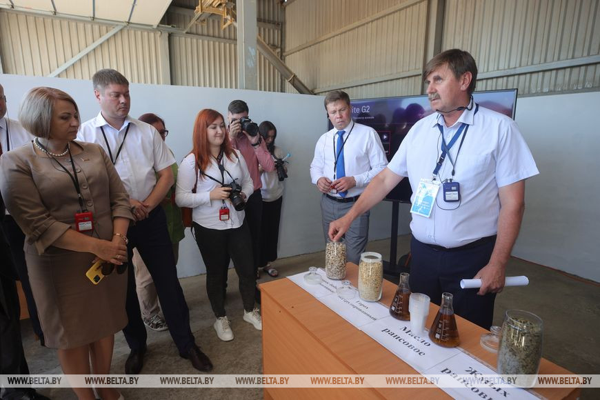Участники ознакомились также с опытом хозяйства по модернизации в сфере механизации. "Вся техника оборудована не только системой контроля и учета топлива, но и практически вся техника, работающая на посеве, кошении, оборудована системой автопилотирования для облегчения работы, курсоуказателями, которые применяются при обработке средствами защиты растений, внесении минеральных удобрений", - добавил Виктор Семенович.