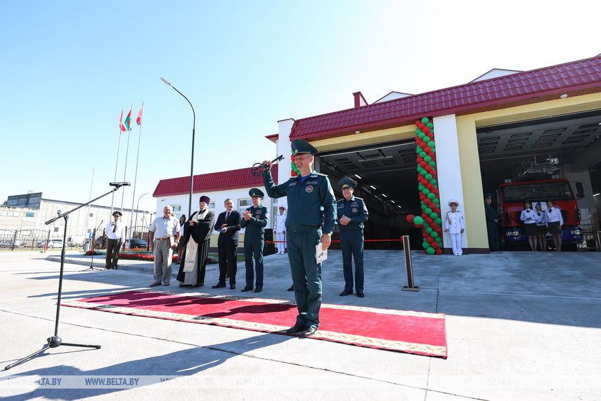 30 июля, Логойск /Корр. БЕЛТА/. В Логойске сегодня торжественно открыли пожарное депо. Директор генподрядчика по строительству объекта ОАО "МПМК №198" Николай Гиль вручил символический ключ начальнику Логойского районного отдела по ЧС Валерию Войтеховичу, передает корреспондент БЕЛТА.
