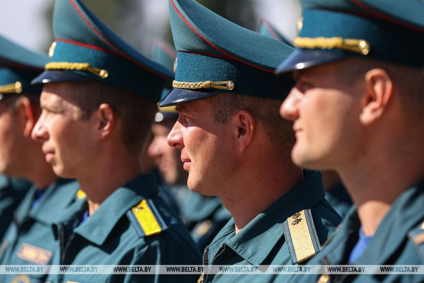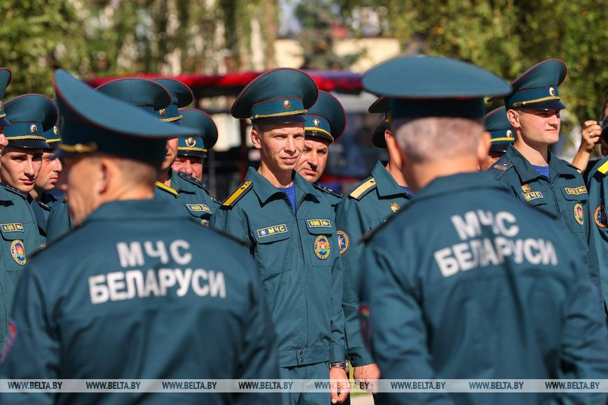 Кроме действующих работников органов и подразделений по ЧС столичного региона, разделить торжественный и важный для службы спасения Минской области момент прибыли министр по чрезвычайным ситуациям Владимир Ващенко, председатель Миноблисполкома Александр Турчин, ветераны службы, выдающиеся спортсмены, которые организовали показательные выступления, юные спасатели-пожарные.