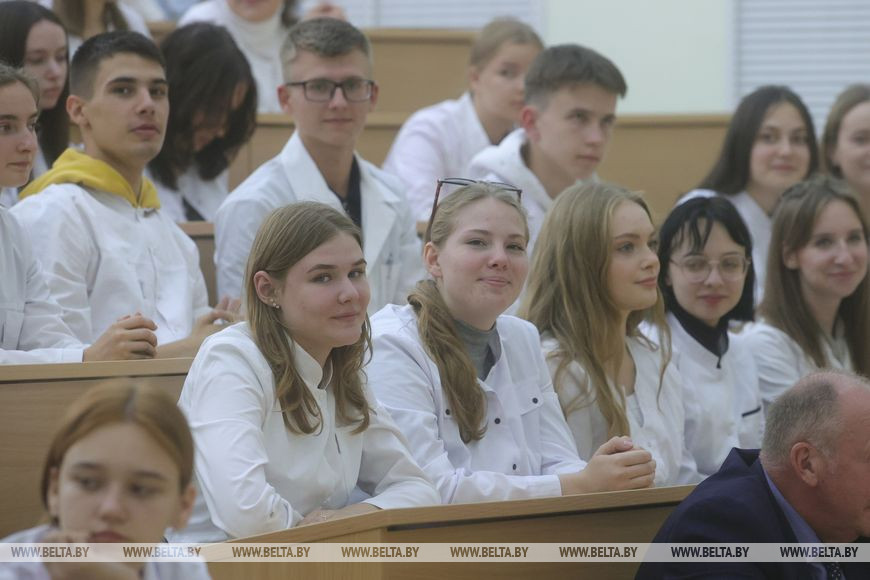 Среди вопросов, которые волновали первокурсников, а все они очень мотивированные ребята: возможность совмещения учебы, спортивной и общественной деятельности, совмещения работы и обучения, а также опыт построения карьеры, в этом плане для многих, как отмечали ребята, председатель облисполкома Владимир Караник является личным примером. "Врачом я мечтал стать с 6 класса. Вижу себя анестезиологом-реаниматологом. Учился в лицее №1 в Гродно на медицинском профиле. Поступал в гродненский медицинский осознанно - хорошие преподаватели, отличная база. У меня целевое направление из Гродненской области, поэтому останусь работать здесь, возможно, вернусь в родной город - Мосты", - поделился первокурсник Руслан Ольховик. Его одногруппница Рената Гуж отметила, что с радостью будет работать в родном агрогородке Конюхи в Берестовицком районе. "Буду рада, если вернусь и буду помогать своим знакомым, с кем бок о бок прожила все детство и юность. Главное, отучиться. Цель у меня есть, пугали, что будет сложно и не смогу даже поступить, но хочу доказать себе и всем, что все могу. Рассматриваю такие направления для себя, как офтальмолог или анестезиолог-реаниматолог", - поделилась девушка.-0-