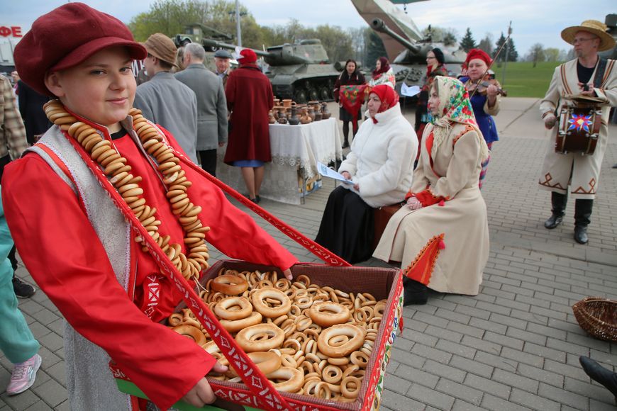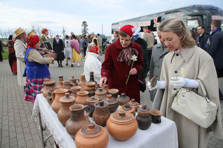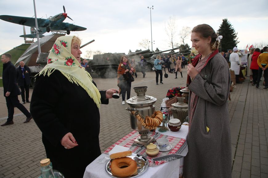 С самого утра на площадке у известного далеко за пределами Беларуси величественного монумента начали собираться делегации сотрудников ОВД и военнослужащих внутренних войск из разных уголков страны, а также ветераны. На месте работали интерактивные площадки, воссоздающие элементы городского быта 1940-х годов. Гости могли побывать в импровизированной аптеке, книжной лавке, на рынке, в трактире, в обувной мастерской. Их угощали пирожками, семечками, баранками, леденцами.