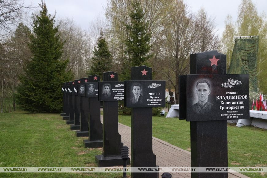 Оборона Могилева легендарной страницей вошла в историю Великой Отечественной войны. За 23 дня ожесточенных боев немецко-фашистские захватчики потеряли здесь 24 самолета, около 200 танков, 400 мотоциклов, 500 автомашин. Советскими войсками было уничтожено 15 тыс. и взято в плен около 2 тыс. солдат и офицеров. Навеки в сердцах - героический подвиг сотрудников органов внутренних дел из батальона милиции капитана Константина Владимирова. 6 дней и ночей без сна и отдыха люди в погонах бесстрашно сдерживали натиск фашистских войск на поле недалеко от деревни Гаи. О масштабах той военной трагедии говорят цифры: из 250 бойцов батальона в живых осталось лишь 19.