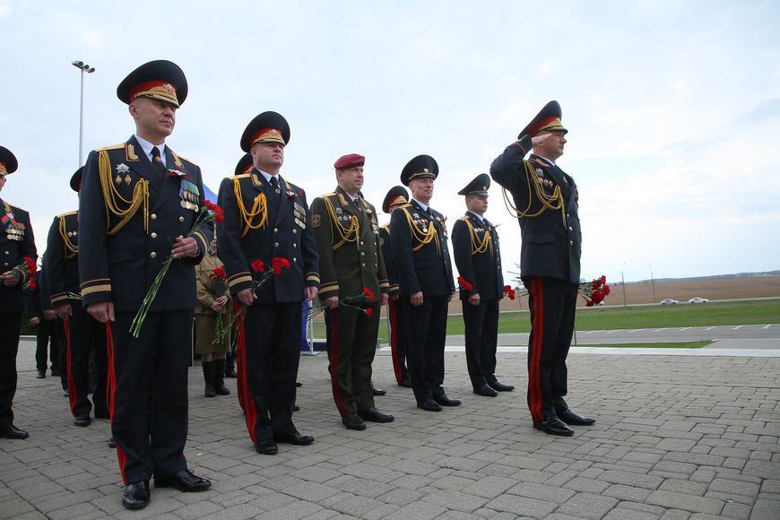 Масштабная патриотическая акция развернулась накануне Дня Победы. Отправной точкой стала площадка у мемориального комплекса "Курган Славы" в Смолевичском районе, где собрались сотрудники МВД изо всех уголков Беларуси. Министр внутренних дел генерал-лейтенант милиции Иван Кубраков, его заместители, руководители областных УВД и ГУВД Мингорисполкома, подразделений центрального аппарата и центрального подчинения, ведомственных учреждений образования почтили память героев минувшей войны, возложили венки и цветы к Кургану Славы.