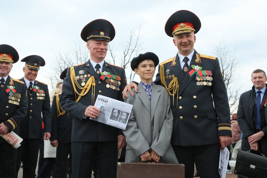 Не меньший интерес вызвала выставка военной техники времен Великой Отечественной, а также военнослужащие в форменном обмундировании того времени. Многие спешили остановить мгновение, запечатлев себя и коллег в этом особенном для каждого белоруса месте.