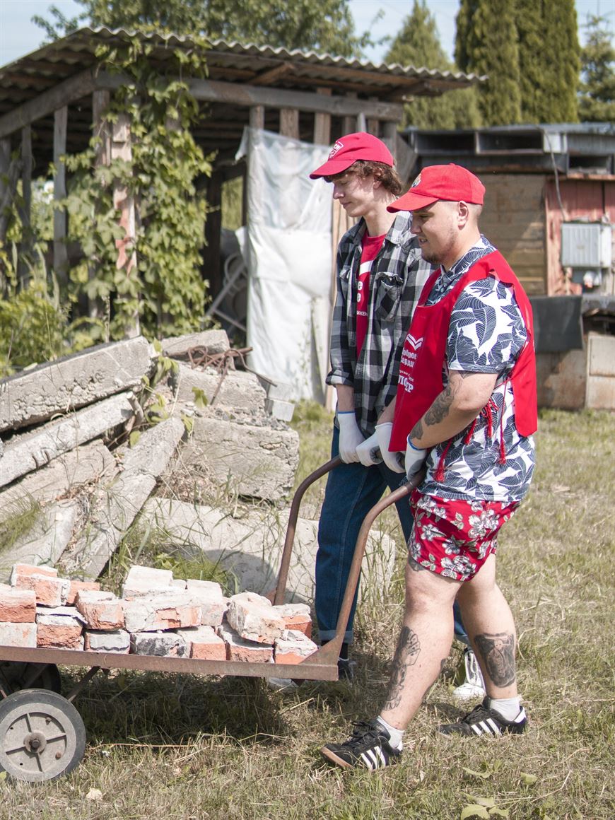 Волонтеры движения БРСМ "Доброе сердце" помогали обустроить территорию храма, а также покосили траву, обрезали кустарники и убрали строительный мусор за ее пределами. Среди волонтеров - руководитель лучшего волонтерского отряда в республике среди работающей молодежи, обладатель званий "Самый сильный гомельчанин", "Человек года Гомельской области", "Волонтер года Республики Беларусь" по итогам онлайн-голосования Иван Дусенок. Вместе со своей командой он приступил к работе с самого утра, чтобы завершить намеченный план до полуденного зноя. "Храму оказываем помощь не первый год. Находимся рядом и практически в любое время можем подойти и помочь. Сегодня помогали в благоустройстве территории - надо поддерживать порядок. Наш волонтерский отряд всегда открыт для любых дел и просьб. Готовы в ближайшее время выехать и помочь на любых объектах", - рассказал Иван Дусенок.