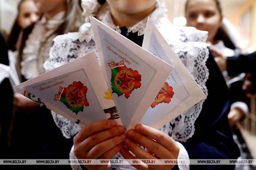 По случаю Дня защитников Отечества и 105-летия Вооруженных сил Республики Беларусь в 10 районах Минской области прошла акция "Мое письмо солдату". Школьники разных возрастов адресовали теплые слова признательности молодым людям, проходящим срочную военную службу, и пожелали им мирного неба над головой. Корреспонденты БЕЛТА побывали в военном городке Печи и узнали, кем гордятся школьники и в чем ценность писем маленьких белорусов для рядовых.