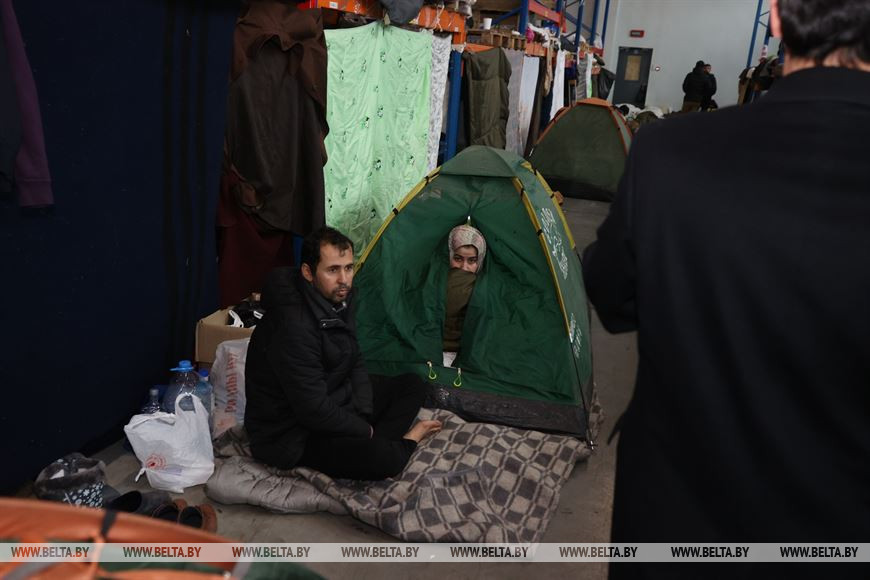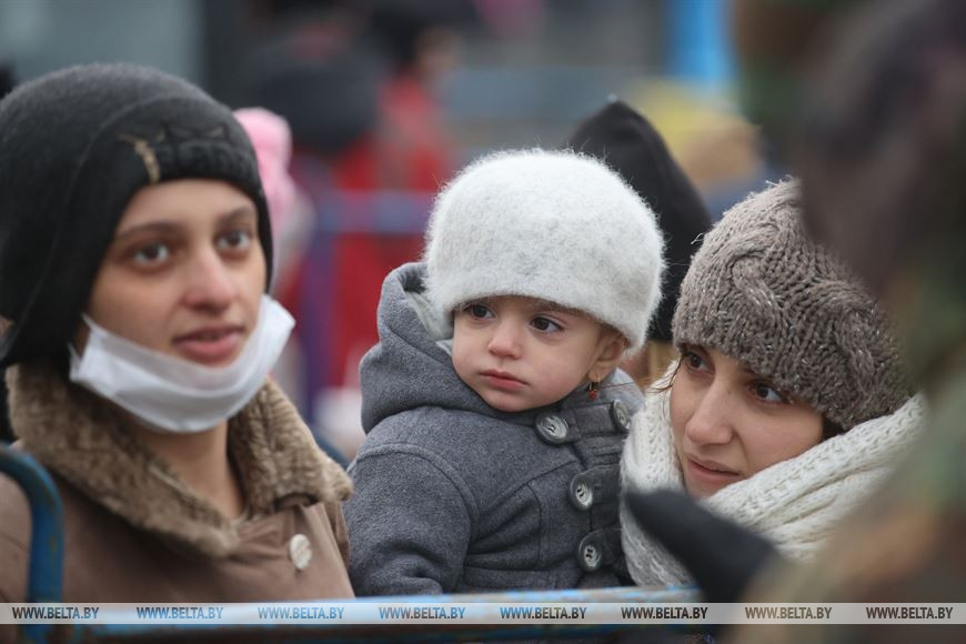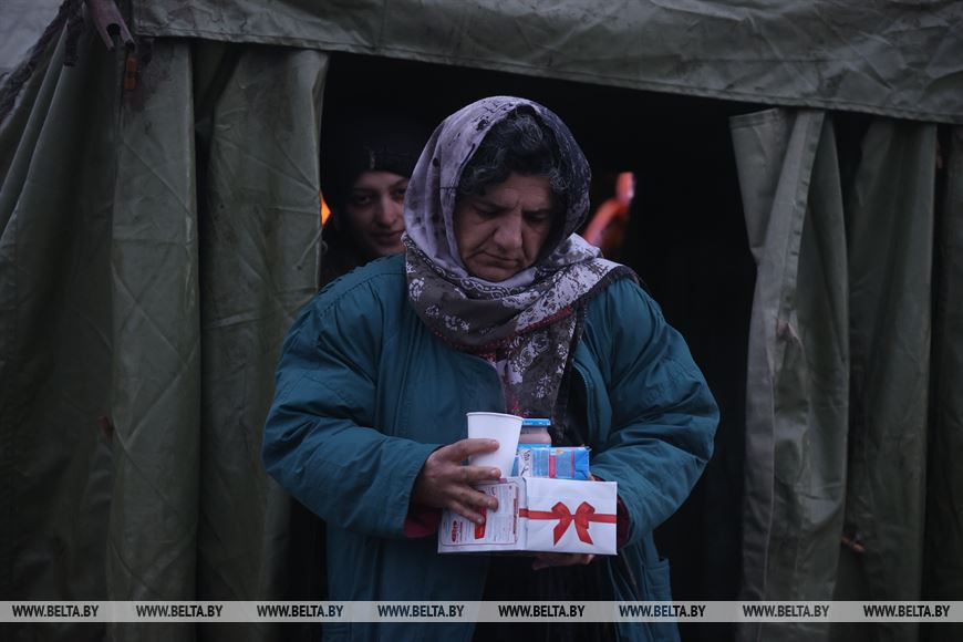 Еще один беженец по имени Хасан подтверждает сказанное снимками на смартфоне. "Смотрите, какие грязные улицы, разбитые дома. И это одна из многих проблем. Нет работы, нет денег, зато много опасности для всех нас", - рассказывает он. Мужчина благодарит белорусскую сторону за помощь, за то, что беженцы обеспечены продуктами, теплыми вещами.-0-