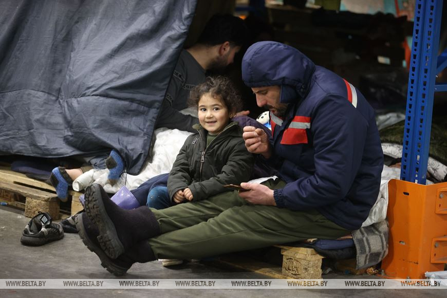 "Я здесь с мужем и двумя детьми. Сейчас холодная погода. Кто знает, что было бы с нами в лесу? А так, спасибо Беларуси за заботу, прежде всего о детях. Есть еда, выдают теплые вещи. Сегодня для малышей устроили новогодний праздник, выдали подарки", - рассказывает Ават.